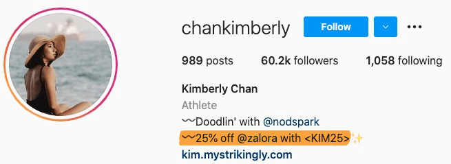 I KPI consentono di valutare i tuoi progressi verso i tuoi obiettivi. Se hai già fissato degli obiettivi, dovresti già essere a conoscenza anche dei tuoi KPI. Ad esempio, se stai tracciando il numero di vendite, potresti fornire all’influencer un codice sconto personalizzato con il loro nome.