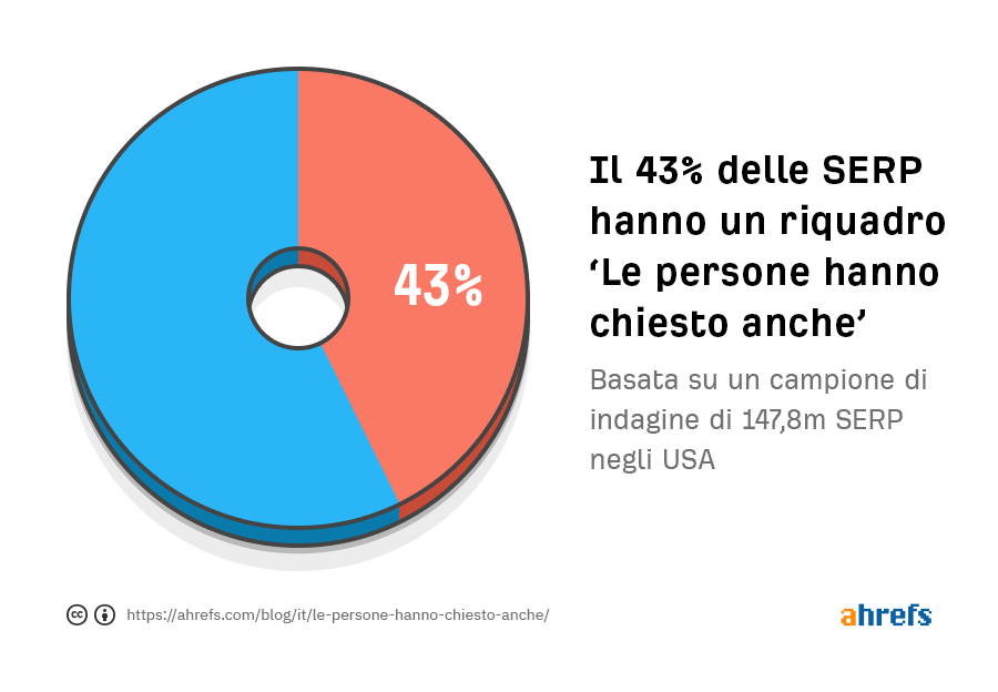Infatti, secondo Keywords Explorer di Ahrefs, il 43% delle query di ricerca ora mostra il riquadro PAA:
