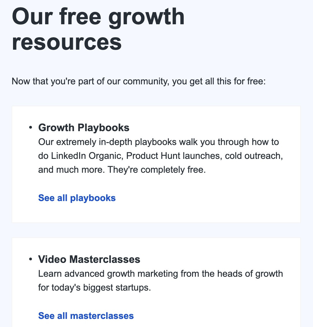 Ad esempio, dopo aver confermato l’iscrizione, l’agenzia di marketing Demand Curve invia un’e-mail con una serie di risorse da controllare: