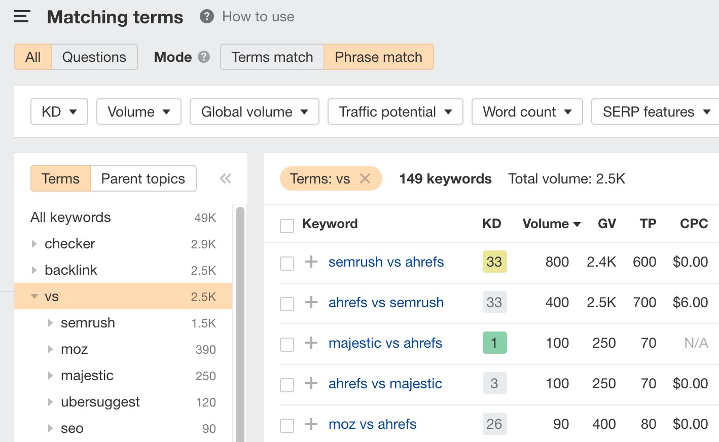 Sta a te decidere se creare una pagina o singole pagine per ogni concorrente. Noi di Ahrefs abbiamo creato una pagina “versus”: