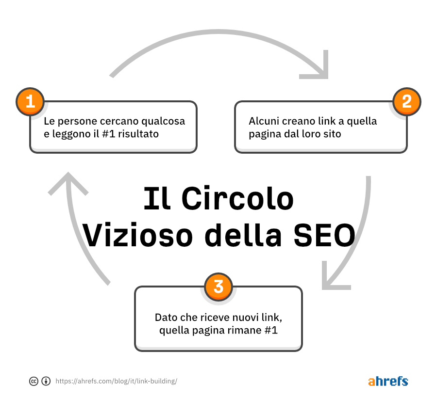 Già nel momento in cui viene pubblicata, la tua magnifica pagina ha uno svantaggio enorme contro quelle già posizionate per lo stesso argomento in cima a Google. E se vuoi rompere il circolo vizioso, devi essere proattivo nell’acquisire dei backlink verso di essa.