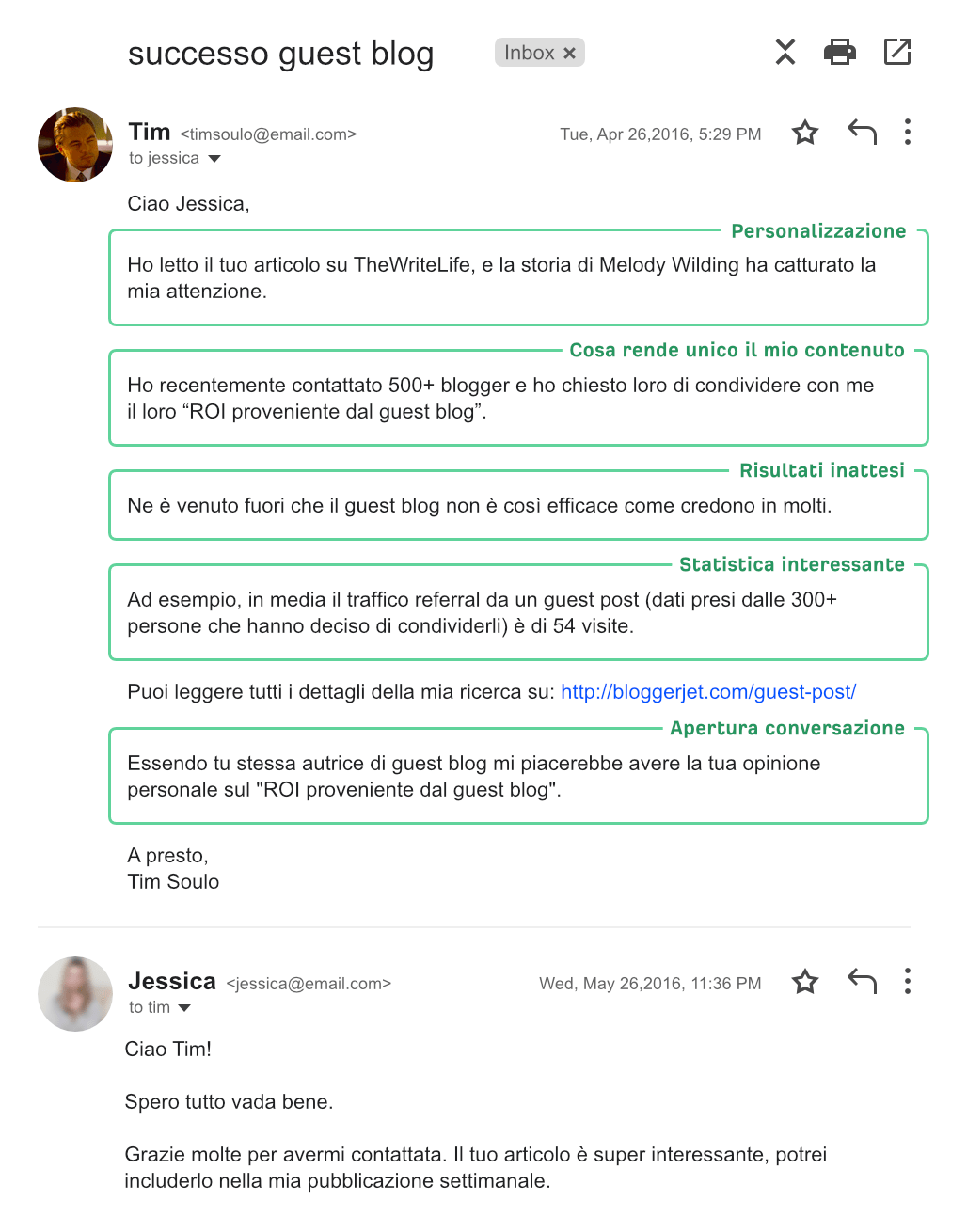 Esistono parecchi articoli che possono insegnarti a scrivere efficaci email di contatto. Anche io ho condiviso il mio pensiero in merito qui sul blog di Ahrefs. Se solo potessi darti un singolo consiglio, sarebbe questo: