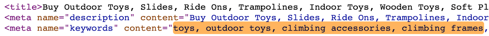 Per esempio, ecco i meta tag parole chiave della homepage di un famoso negozio di giochi:
