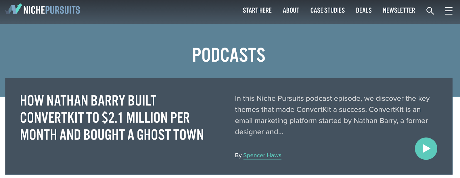 Condotto da Spencer Haws, Niche Pursuits è un podcast focalizzato nel guadagnare con siti web in affiliazione di nicchia.