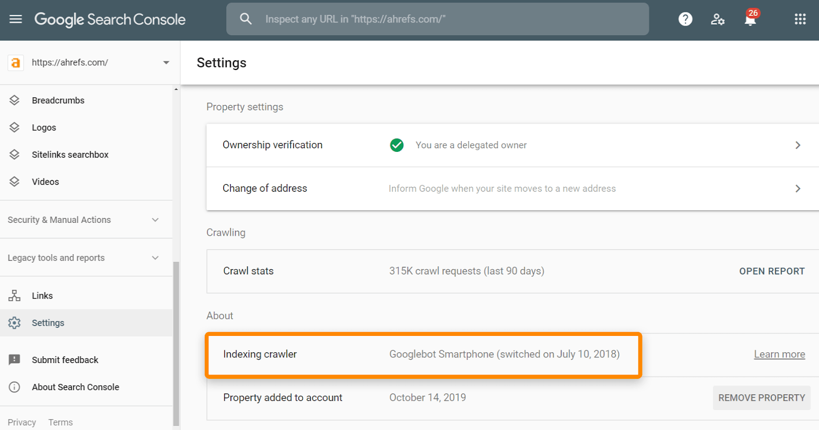 Puoi verificare se tu sia o meno in quel 70% o meno attraverso Google Search Console. Vai su “Impostazioni” e nella sezione “About” c’è la voce crawler, che ti dirà se il tuo sito è già sul mobile-first indexing.