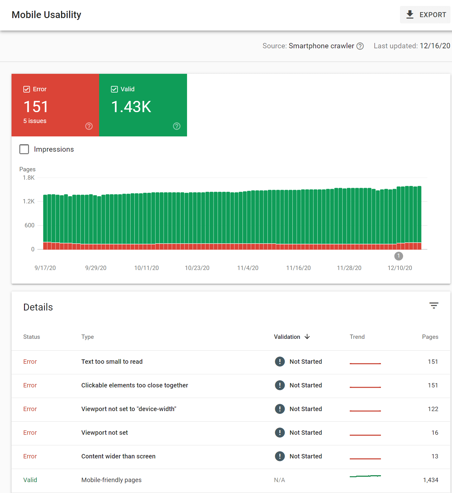 Dimensioni del testo, elementi cliccabili, padding, ecc.. Puoi ottenere queste informazioni dal Mobile-Friendly Test di Google o all’interno della Google Search Console nella scheda “Enhancements” > “Mobile Usability”.