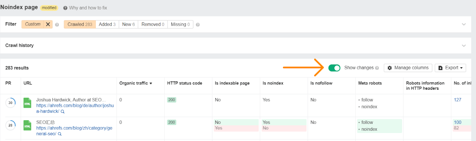 Se clicchi sopra ad uno dei problemi presenti nel report, noterai l’opzione chiamata “Show changes”, che evidenzierà proprio queste differenze.
