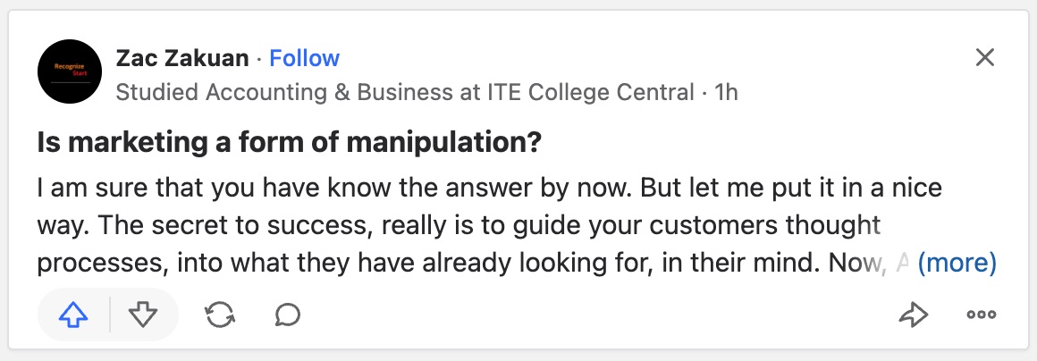 Ad esempio, stavo cercando informazioni sul’argomento “marketing” su Quora e ho visto questo post:
