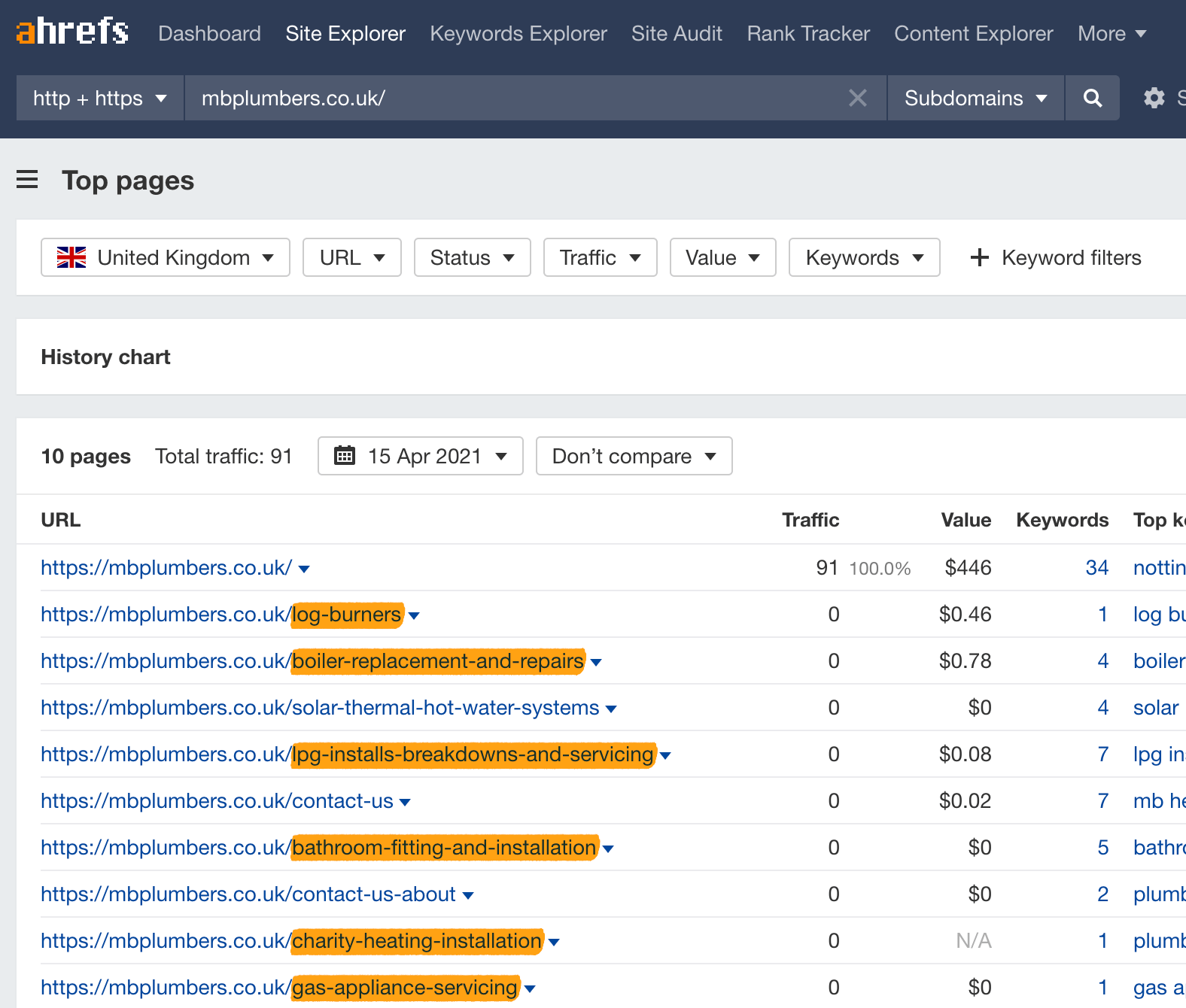 Ad esempio, se sei un idraulico a Londra, probabilmente avrai già capito che dovrai posizionarti per parole chiave come “idraulico a Londra”. E per i servizi che offri? Hai delle pagine dedicate allo sblocco degli scarichi? Sai quanto spesso le persone cercano questa tipologia di servizio?