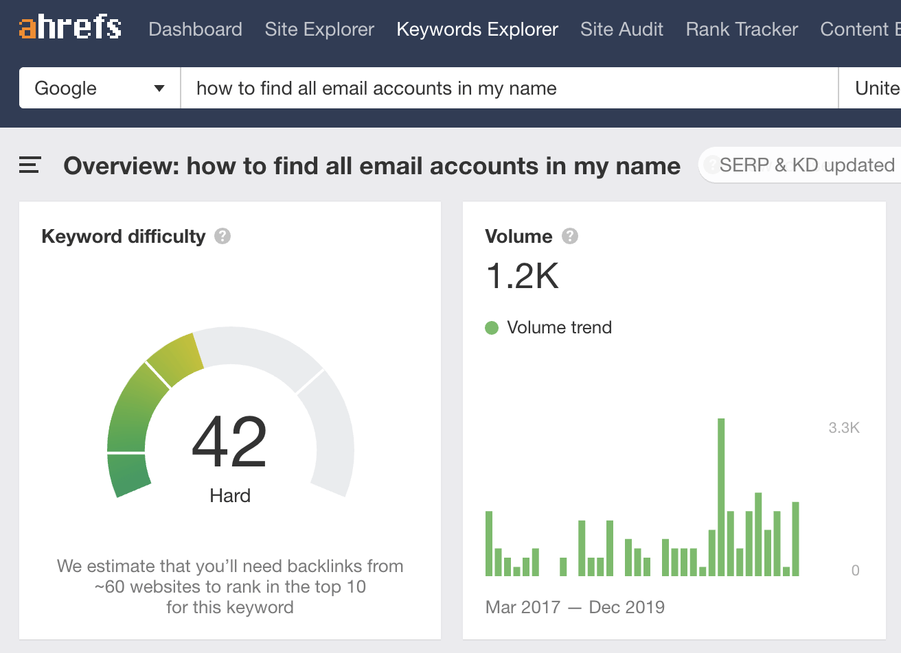 Ad esempio, puoi vedere come il nostro post riguardo al trovare un indirizzo email si posiziona per domande piuttosto richieste, come “come trovare un indirizzo email” e “come trovare l’indirizzo email di una persona con il loro nome”, entrambe delle quali ricevono centinaia di ricerche ogni mese.