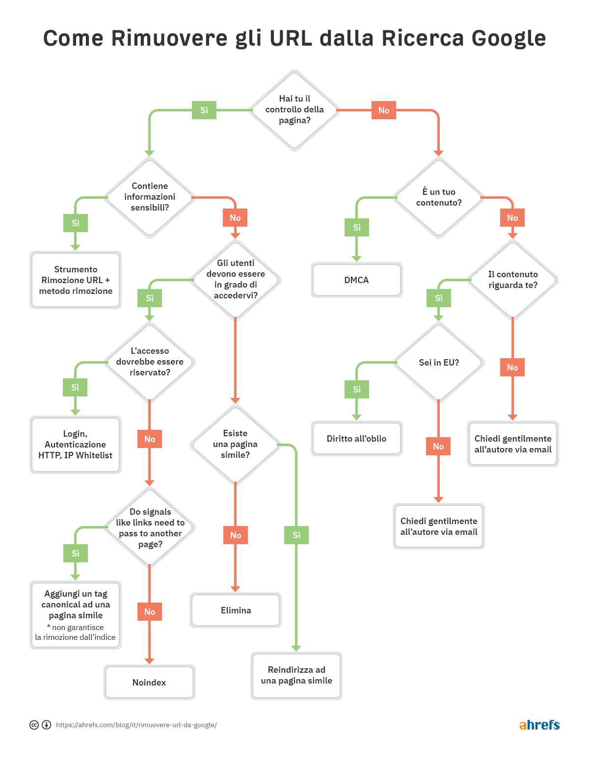 Come potrai rimuovere gli URL dipende dalla situazione. Abbiamo visto molte opzioni, ma se sei ancora confuso ed è normale esserlo, guarda di nuovo al diagramma di flusso all’inizio.