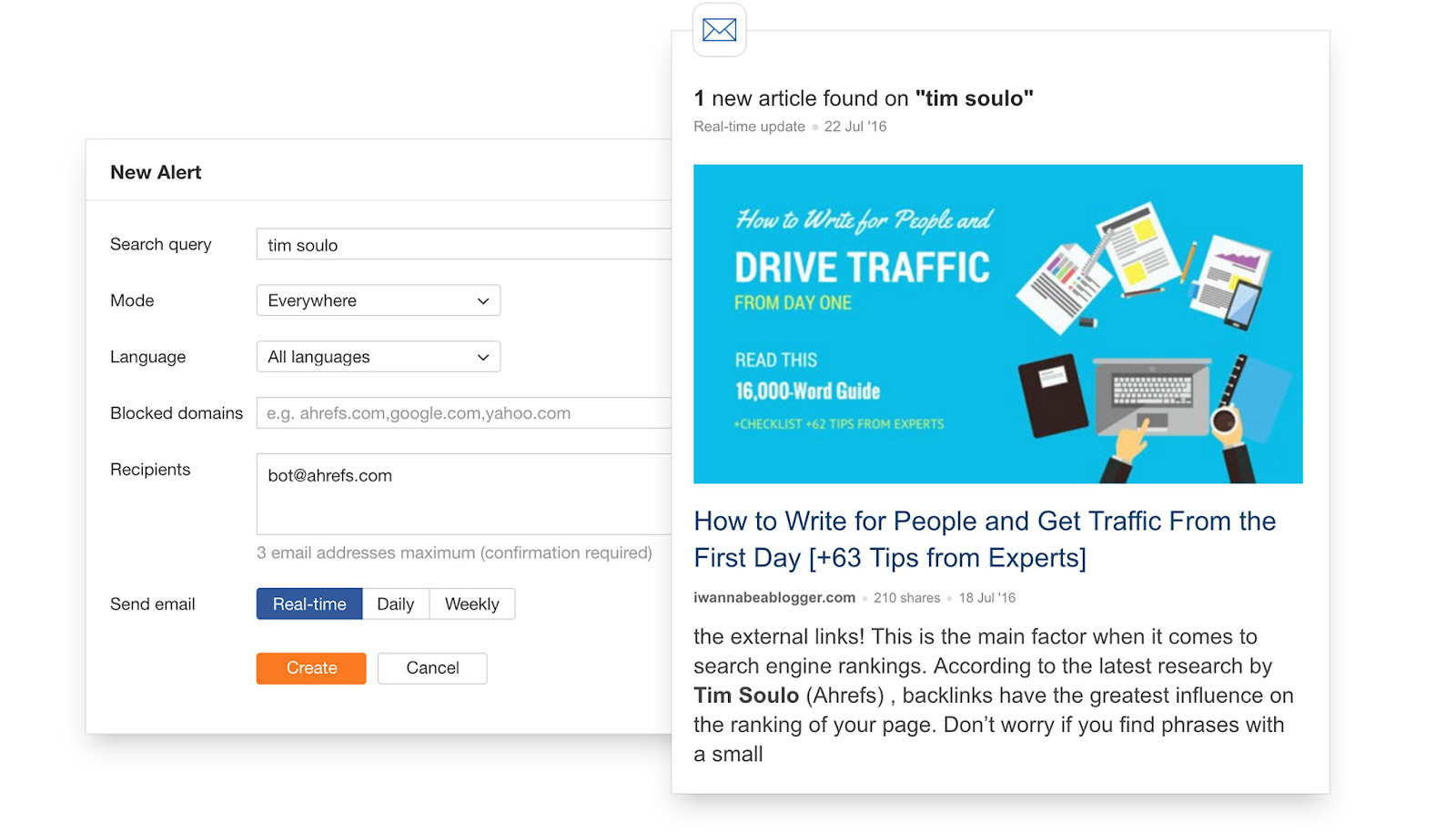 Screenshot preso da Ahrefs Alerts.