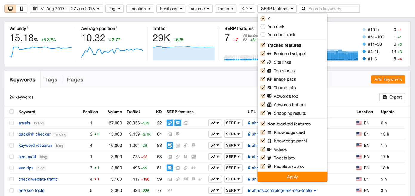 Screenshot dal Rank Tracker di Ahrefs.