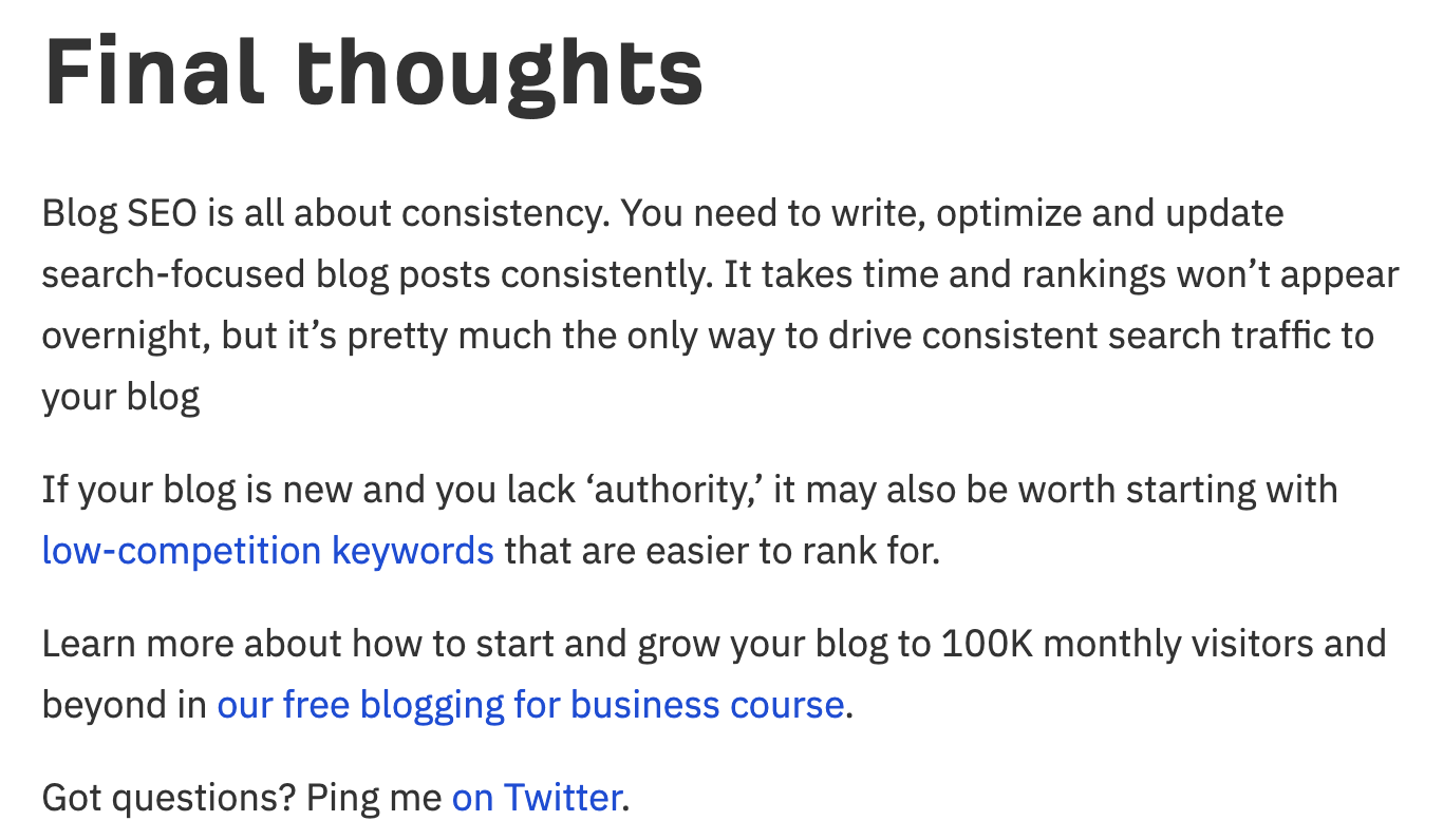 Ecco ad esempio la nostra conclusione all’articolo sul blog SEO: