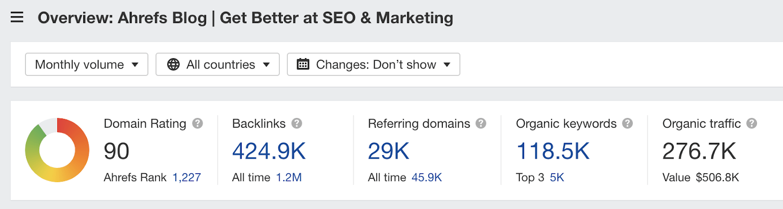 Il blog di Ahrefs ottiene un traffico organico stimato di 276k utenti mensili: