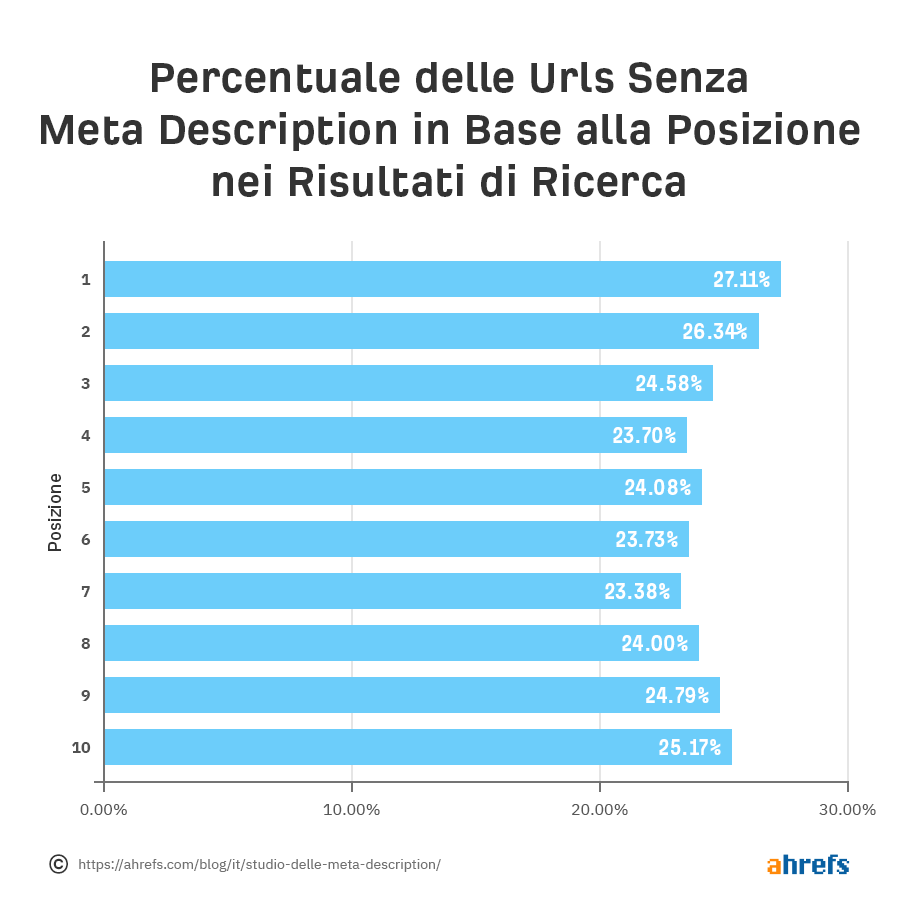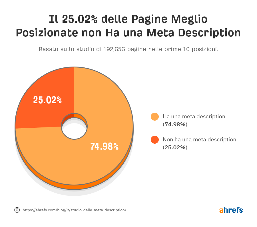 Il 25.02% delle pagine meglio posizionate non ha una meta description