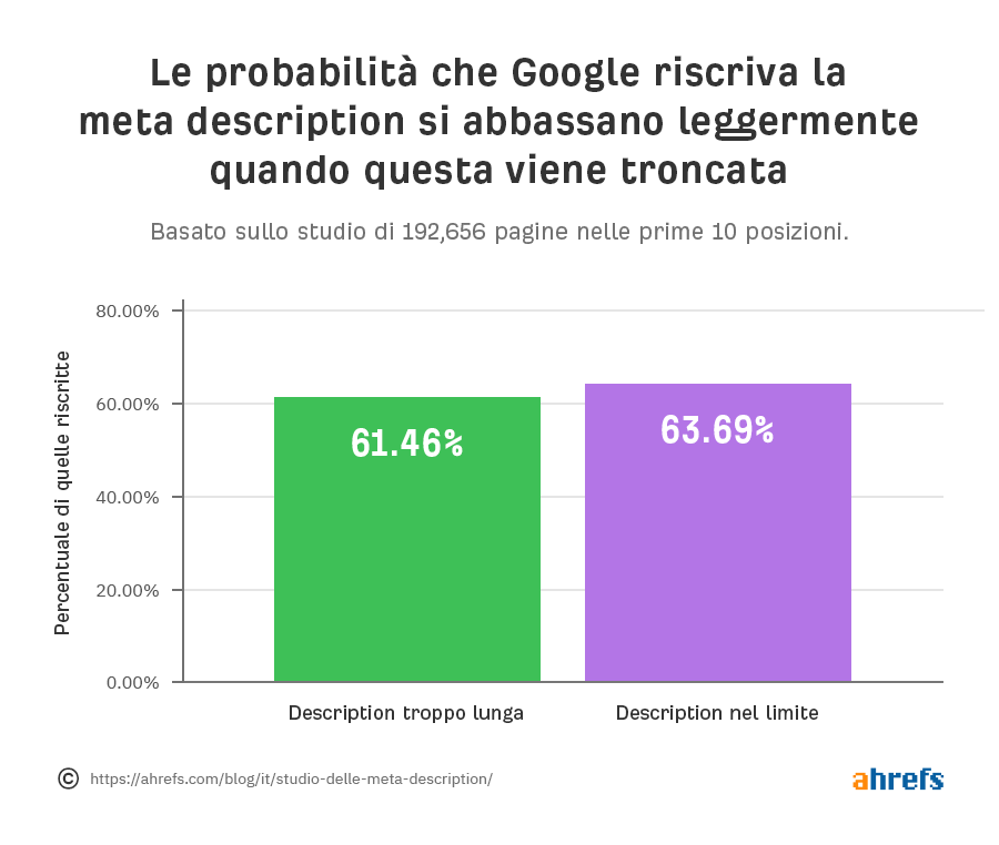 La probabilità che Google riscriva la meta description si abbassa leggermente quando questa viene troncata