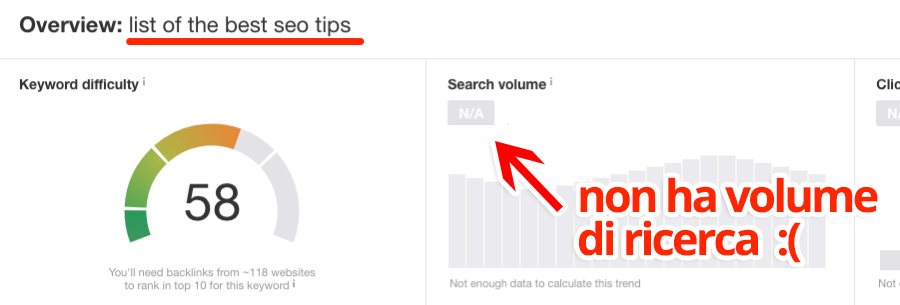 Noterai come esiste poco o nessun volume di ricerca per quello che hai inserito.
