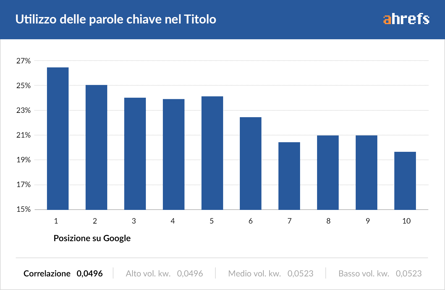 Probabilmente questo è uno dei motivi per cui esiste una correlazione fra l’utilizzo di parole chiave nel titolo ed il posizionamento di una pagina.
