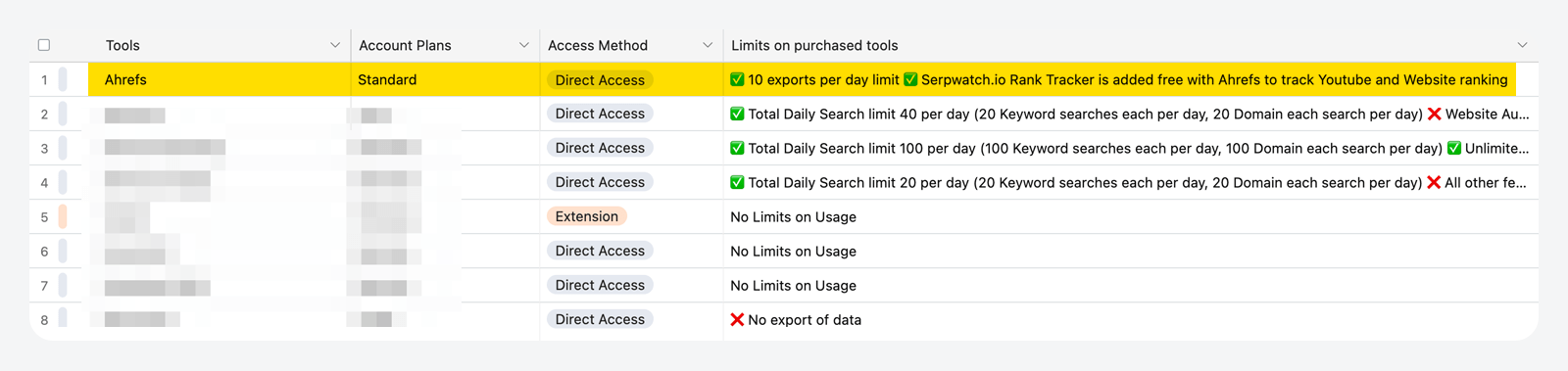 同プランでアクセス可能な Ahrefs ツールは以下の通りです。
