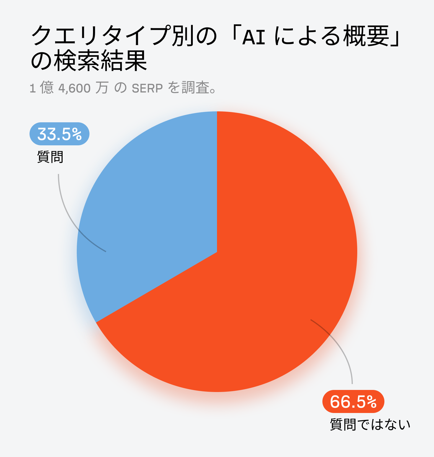 AI Overviews が表示されるキーワードのうち、66.5% は質問形式のクエリとして分類されています。