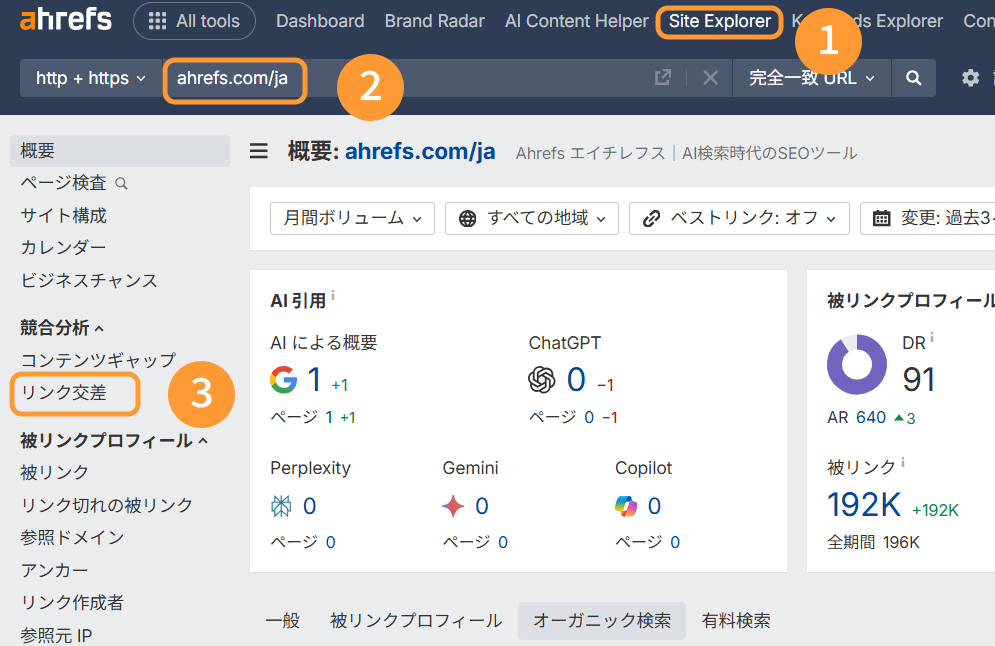 競合他社がどのように支持を集めているかを知ることは、自分たちのリンク戦略を描くための「宝の地図」を手に入れるようなものです。ここでは、多くのマーケターに支持されている Ahrefs の SEO ツールを活用した、一歩踏み込んだ調査方法をご紹介します。