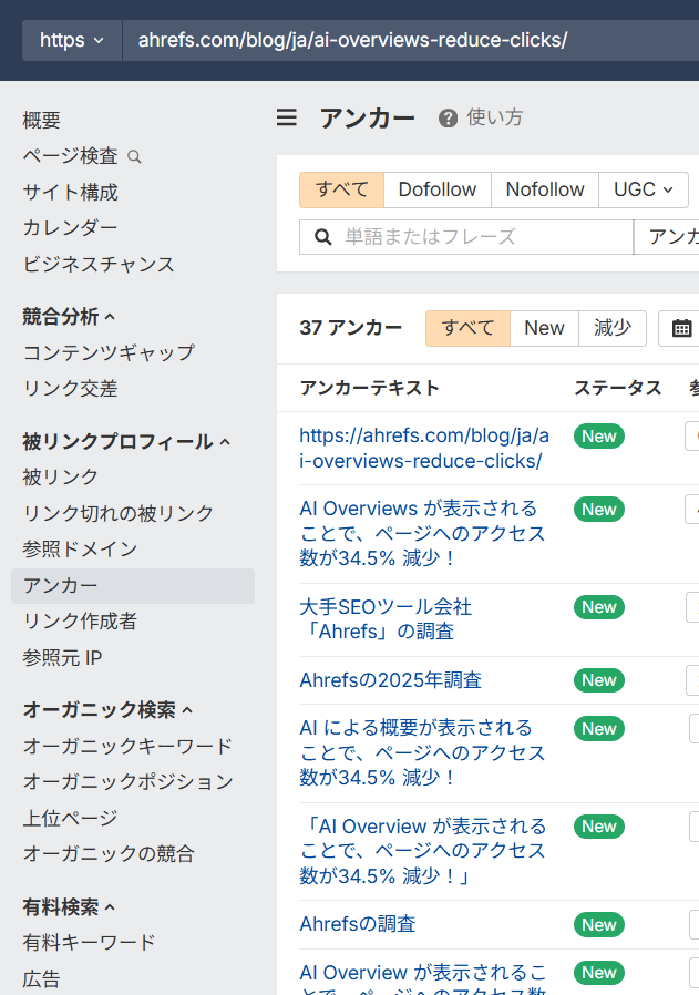 参照ページやアンカーテキストを確認