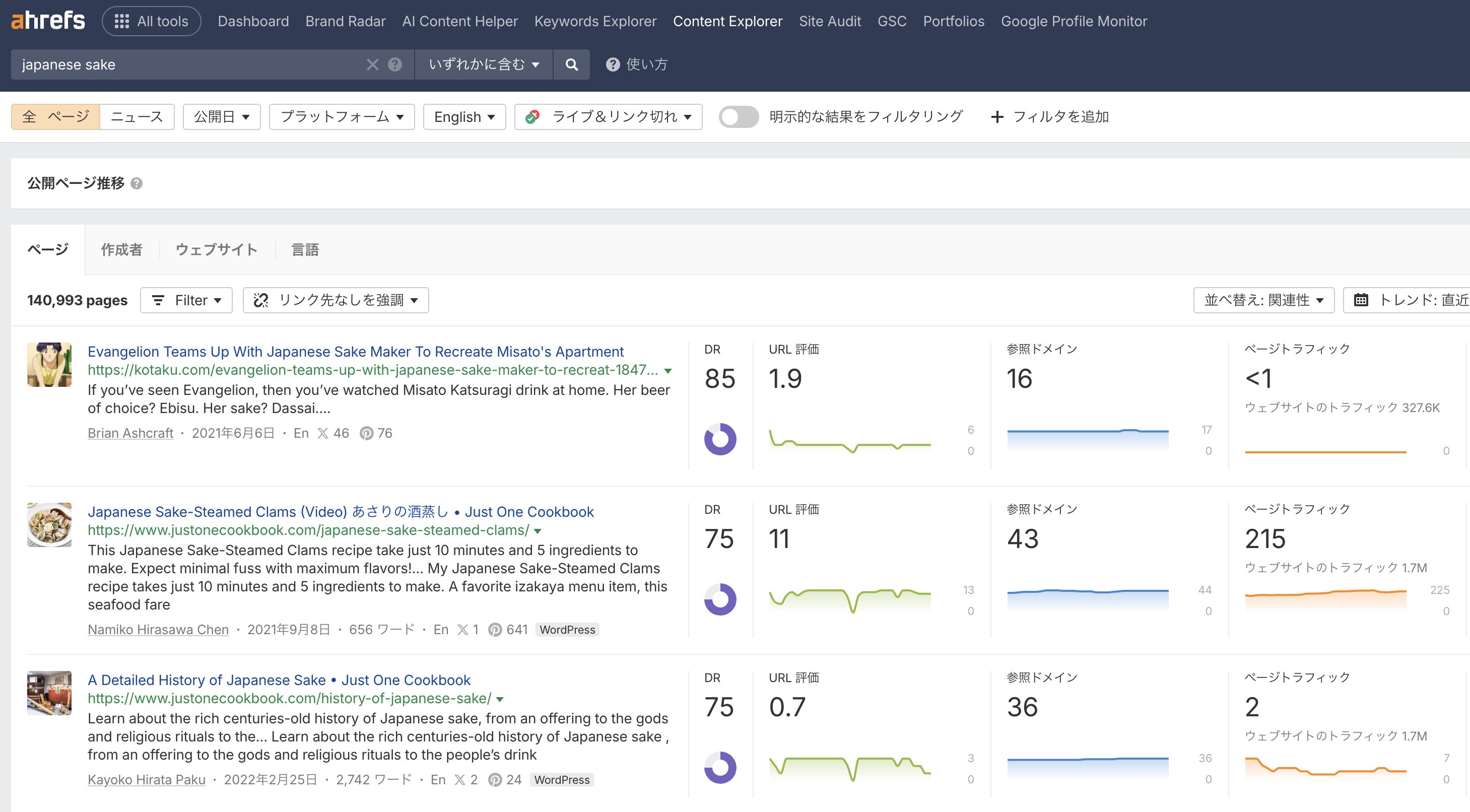 そこで Ahrefs を使い、徹底的に競合サイトを分析しました。