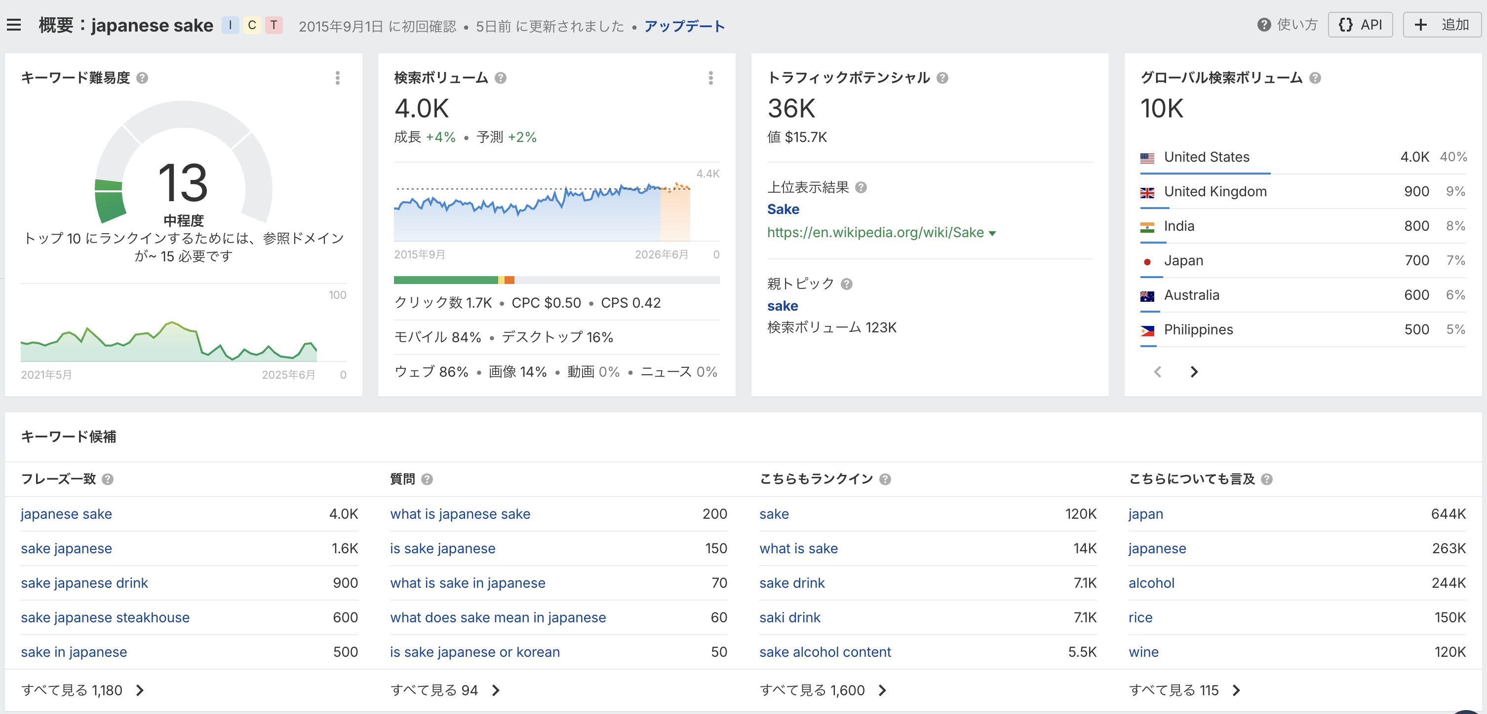 専門家だけが使える高度なツールでは意味がありません。私たちのチームのように多国籍のメンバーがいたり、時には営業担当がお客様への提案資料を作るために使ったりする場面もあります。Ahrefs は UI が直感的で、特定の専門家でなくても使いこなせる。これが最大の決め手でした。