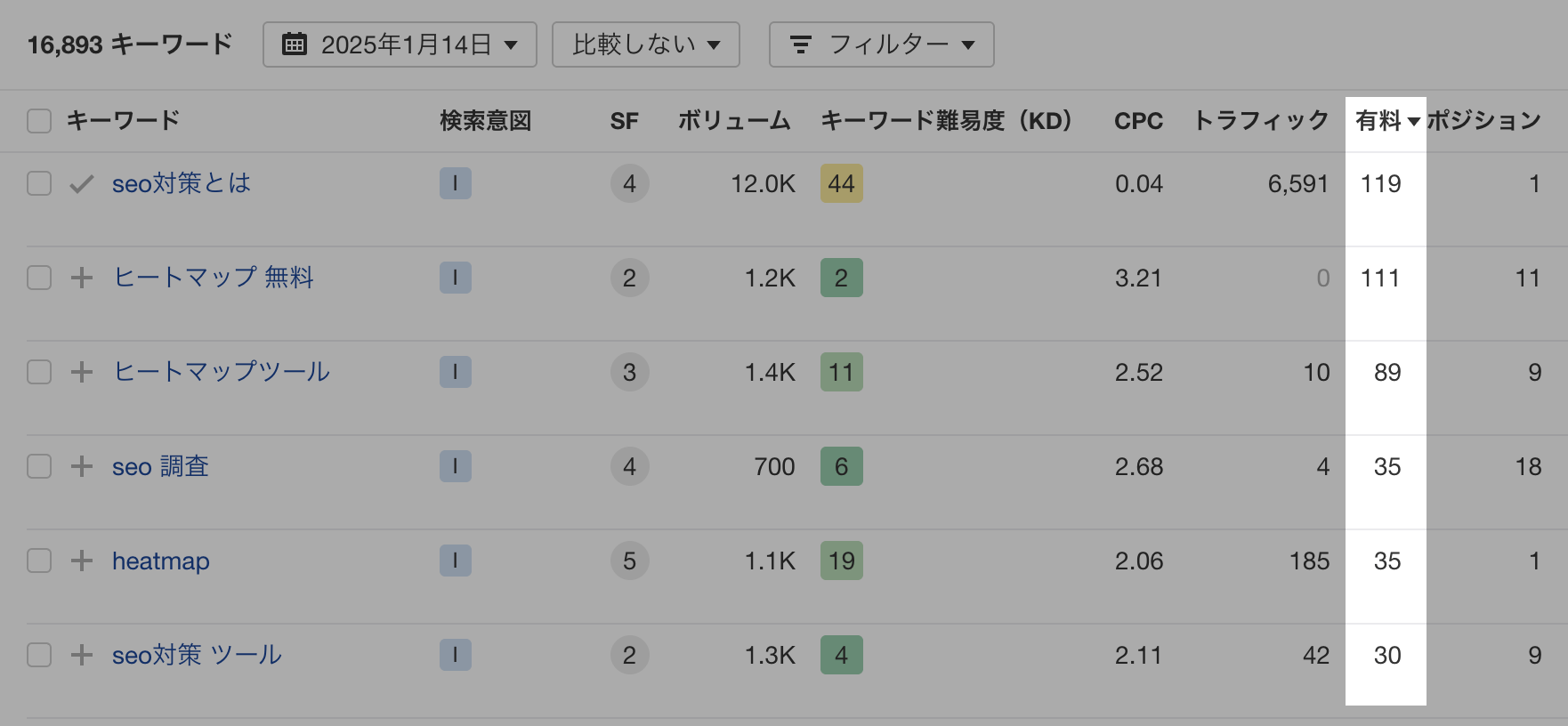 オーガニックキーワードと有料キーワードのレポートで以下が可能に:
