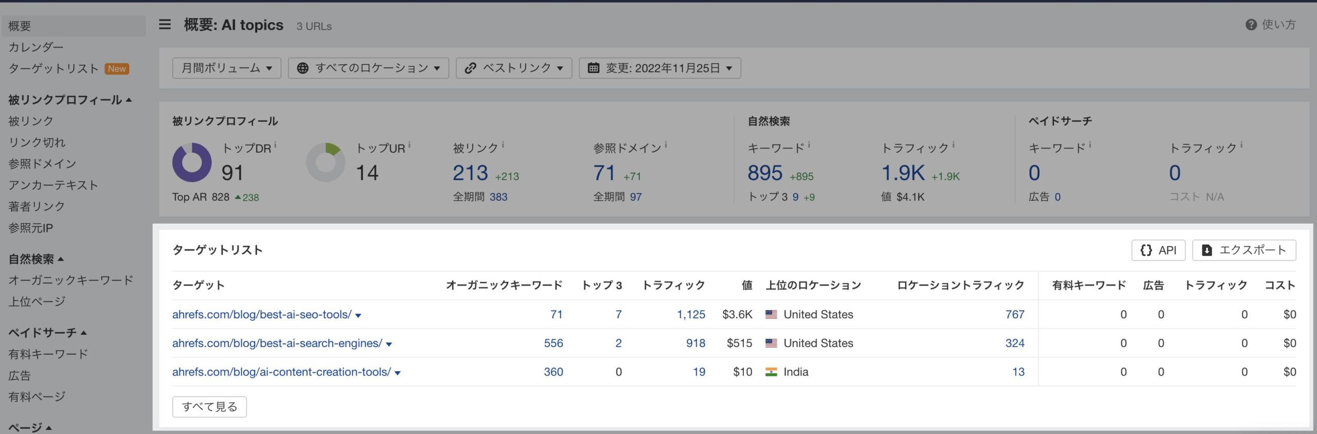 • SERPの主要言語でトピックを生成