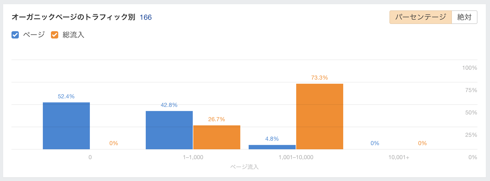 数年前に導入された「トラフィックによるオーガニックページ」ウィジェットが概要に復活しました。これにより、ウェブサイトのSEO戦略を視覚的かつ共有しやすい形で理解できます。