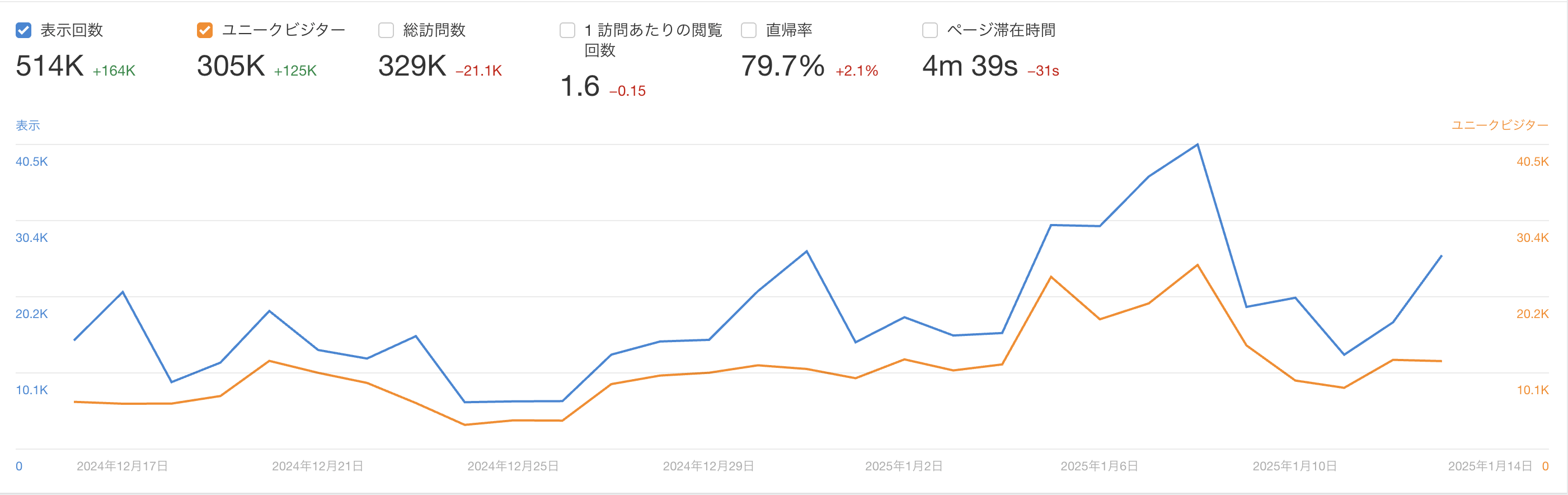 すべての GSC レポートにおいて、カスタム範囲での変更を確認できる「日付選択機能」が追加されました。これにより、特定の期間でのパフォーマンス変動をより詳細に把握できます。