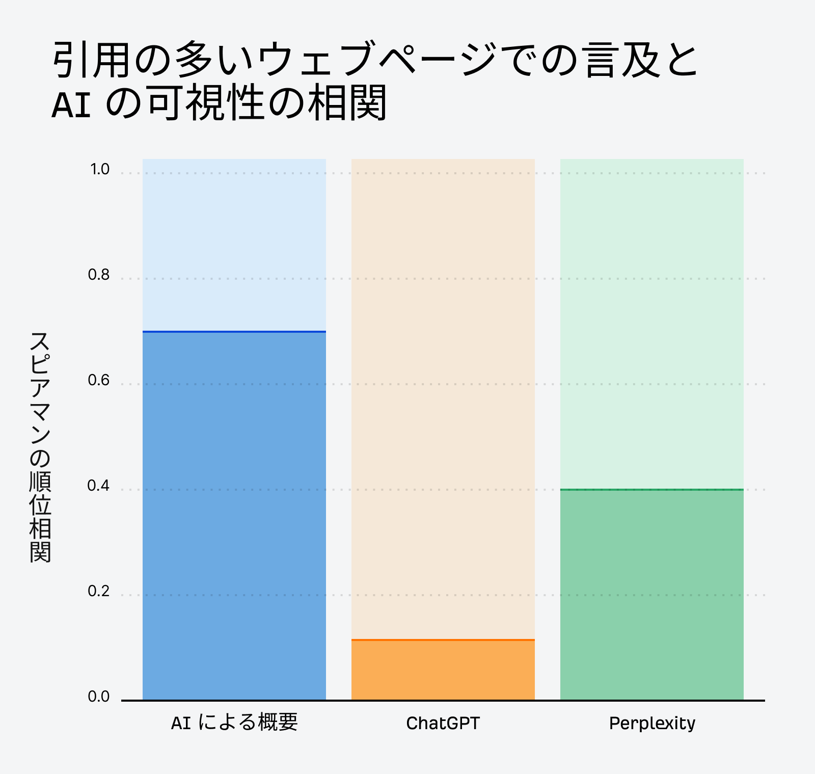 これは、RAG(検索拡張生成)の仕組みにより、AI の可視性が検索での可視性に大きく依存しているためです。