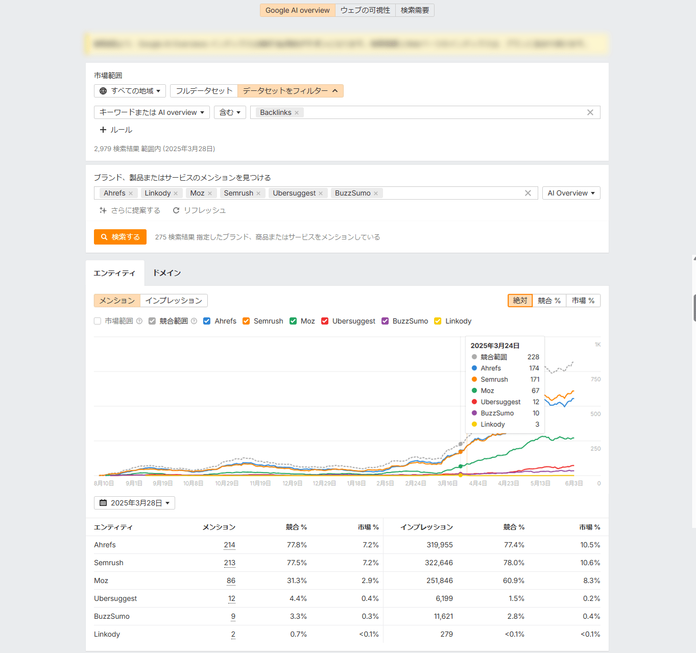 Ahrefs ブランドレーダーを使えば、まさにこれを追跡できます。他にはないブランド比較データはきっと、皆さんの「知りたい」に応えられるはずです。