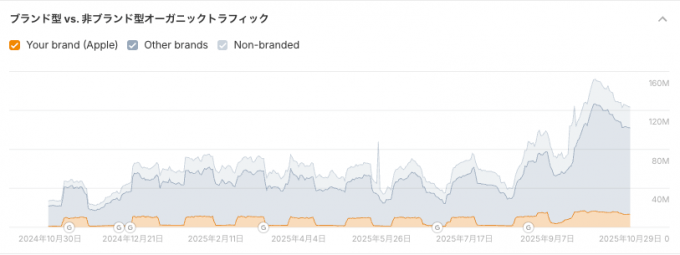 ブランドトラフィックが「Your brand」と「Other brands」に分割され、ターゲットブランドのパフォーマンスを個別に追跡、または競合と比較することができます。