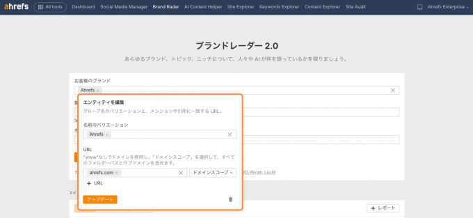 エンティティで URL がサポート されるようになりました。つまり、同一エンティティ内で、名前ベースの言及と URL 引用の両方を追跡できるようになります。