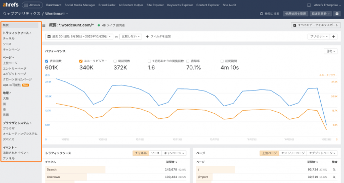 レポート構造を更新しました。すべてのレポートがサイドバーに配置され、ナビゲーションがより簡単になりました。