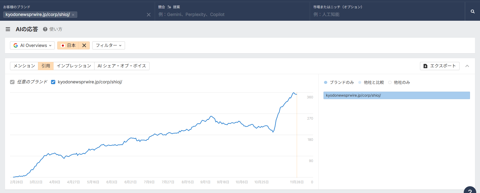 AI の応答における引用数は、2025 年 11 月にかけて大きな増加を見せています。