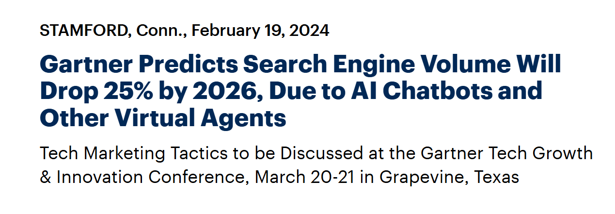 近年、AI ツールの登場が明らかに SEO に変革をもたらしました。企業は AI ライティングツールを利用して中身のないブログ記事を何千件も制作・公開して検索結果ページを独占するようになり、その一方で Google は検索に対して関連ウェブサイトを表示するだけでなく、AI を使ってユーザーのクエリに直接回答することもできるようになりました。つまり、AI は SEO コンテンツの供給を大量増加させると同時に、人々のそれに対する(クリックの)需要を減少させているのです。
