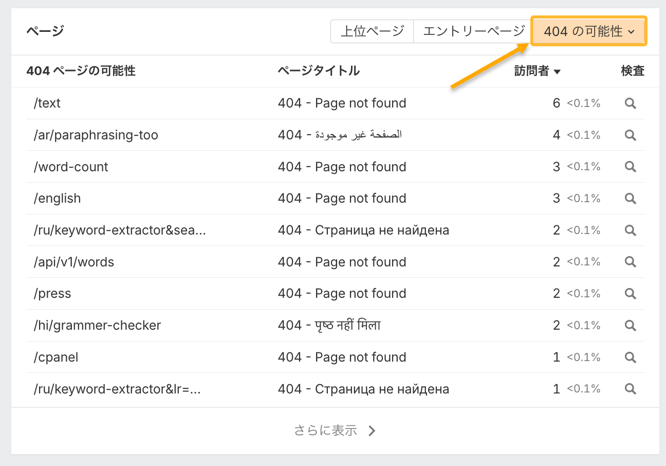 さらに、ハルシネーション現象がある無効なページも表示します。
