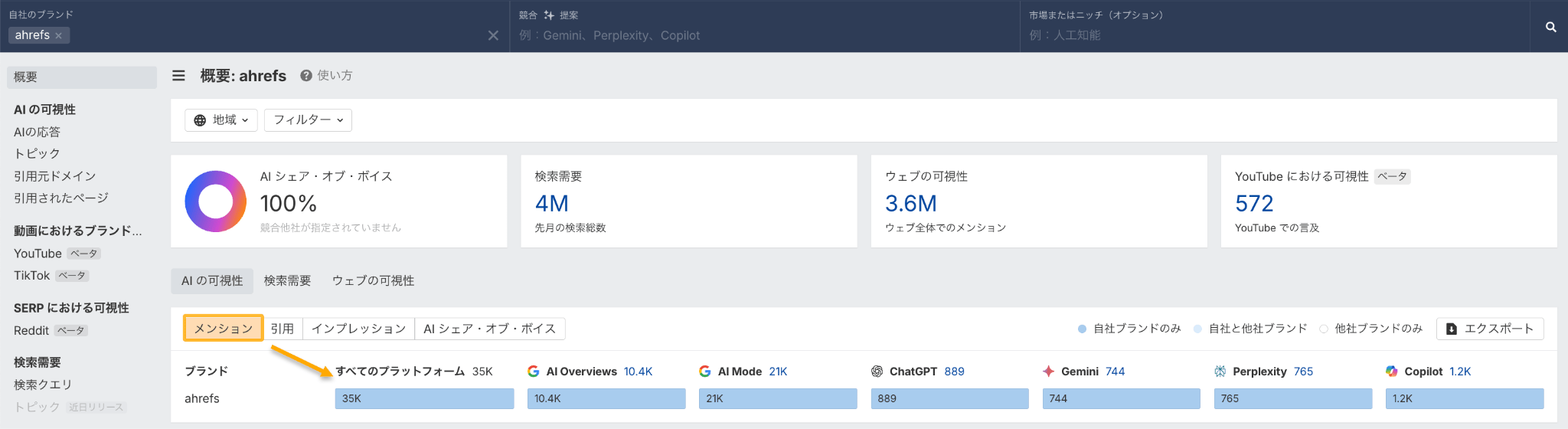 Ahrefs AI の可視性ツール、ブランドレーダーがまさにそれを行います。