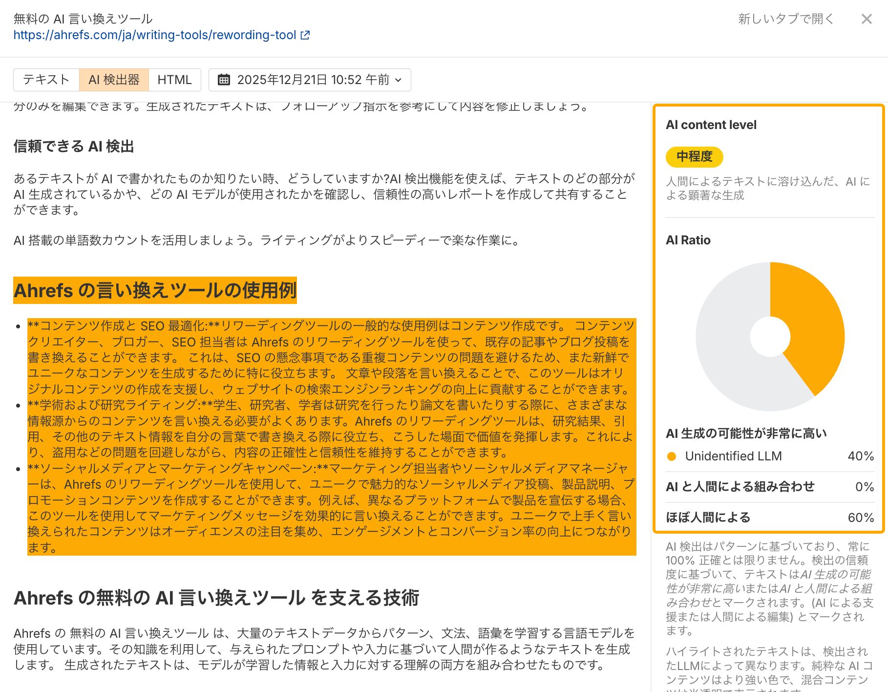 ツール:Ahrefs AI コンテンツヘルパー