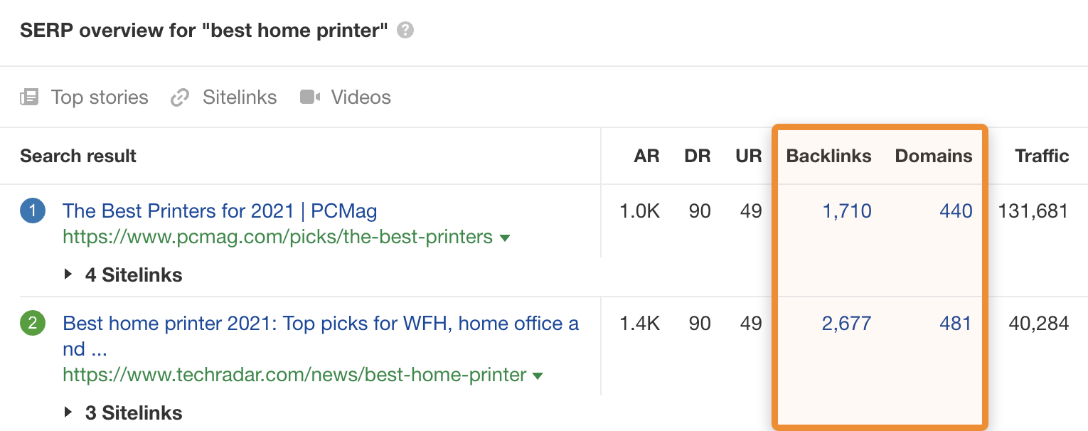 For example, look at the first couple of results for “best home printer”—which has a KD score of 60: