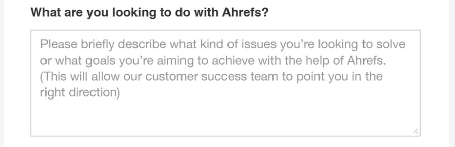 Here’s part of a form we recently incorporated into our onboarding process here at Ahrefs in order to understand our customers a bit better: