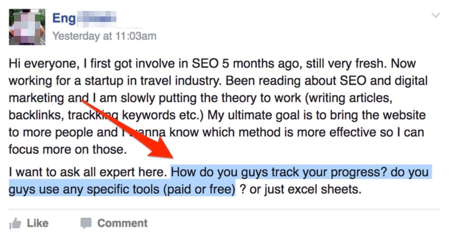 Here are a couple of questions I found within minutes of looking through an SEO-related Facebook group: