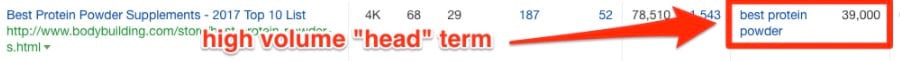 So, we know this page ranks for the head term (i.e. “best protein powder”) and at least one related keyword (i.e. “what’s the best protein powder”).