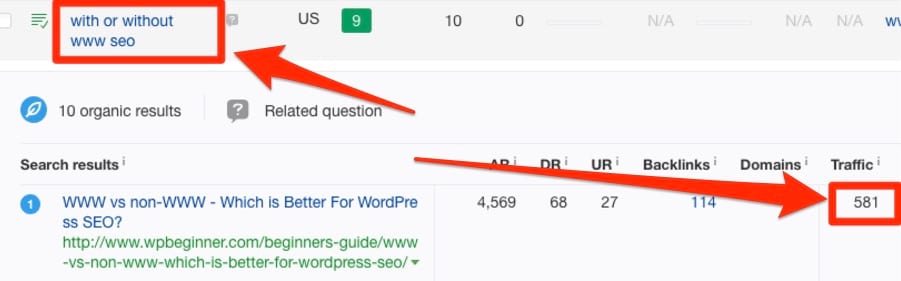 If we look at the top ranking site for that keyword, we can also see that it gets a good amount of traffic. It only has 39 referring domains, too (definitely beatable with a bit of work!).