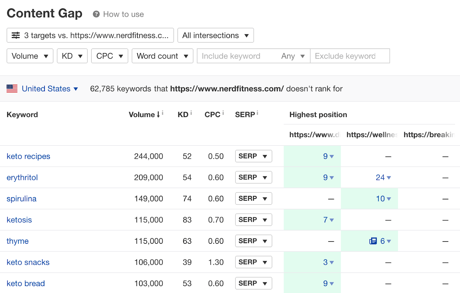 Next, you should find a topic to pitch that has search traffic potential. The quickest way to do this is to run a content gap analysis. This will tell you which topics the site you’re pitching isn’t ranking for, but similar sites to them are.