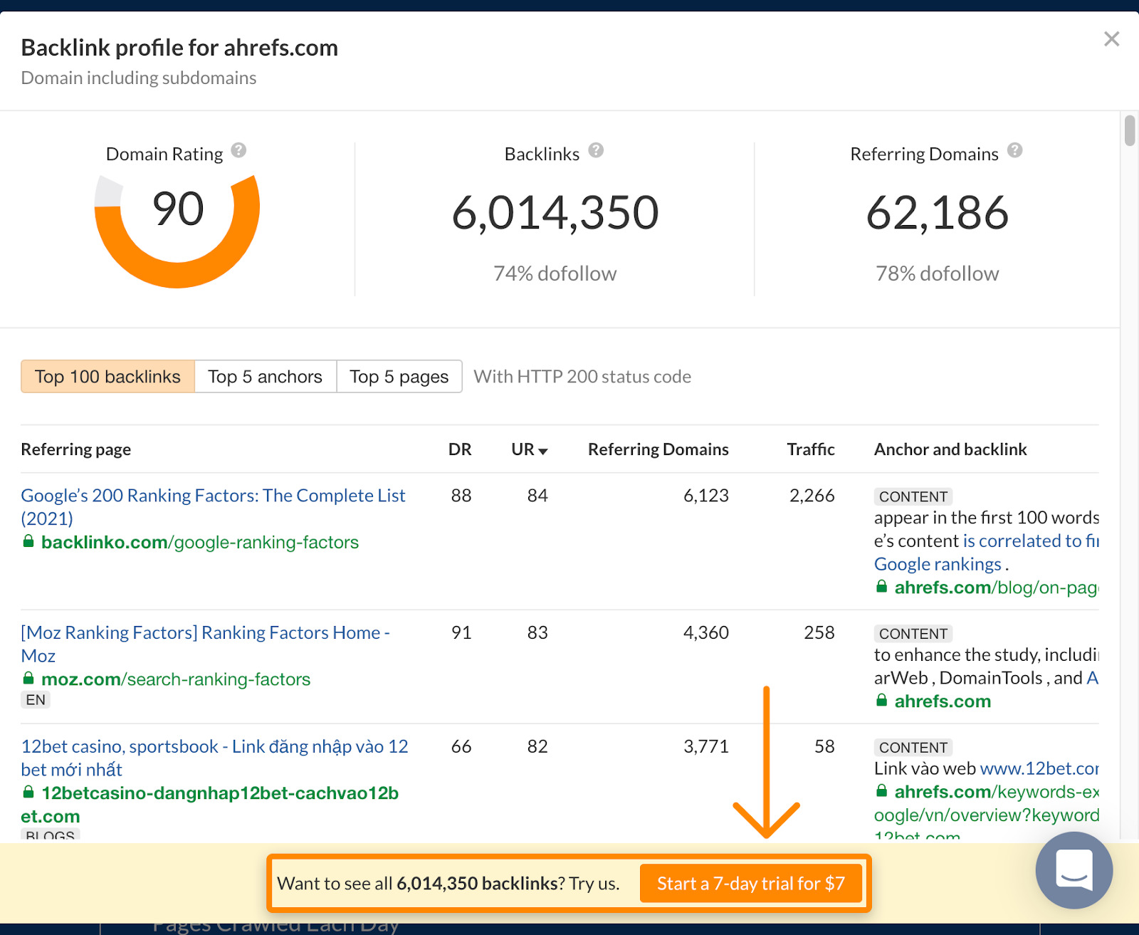 While your free tool should be powerful enough to satisfy those who are using it, don’t forget to add a call-to-action (CTA) to encourage those who want more to sign up. For example, here’s how the CTA for our backlink checker looks: